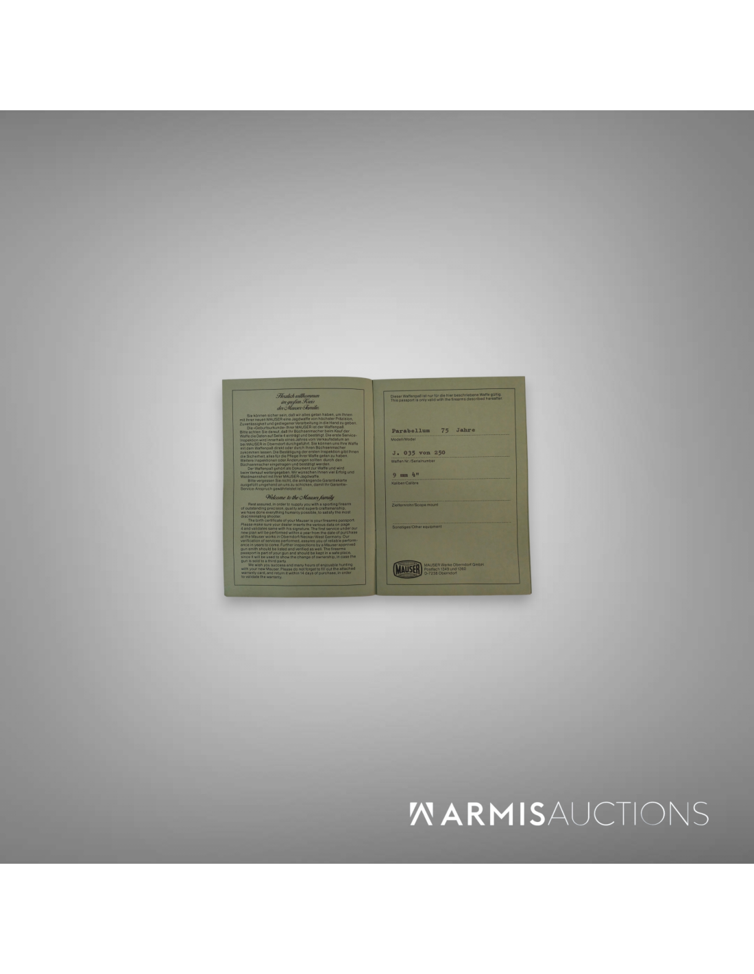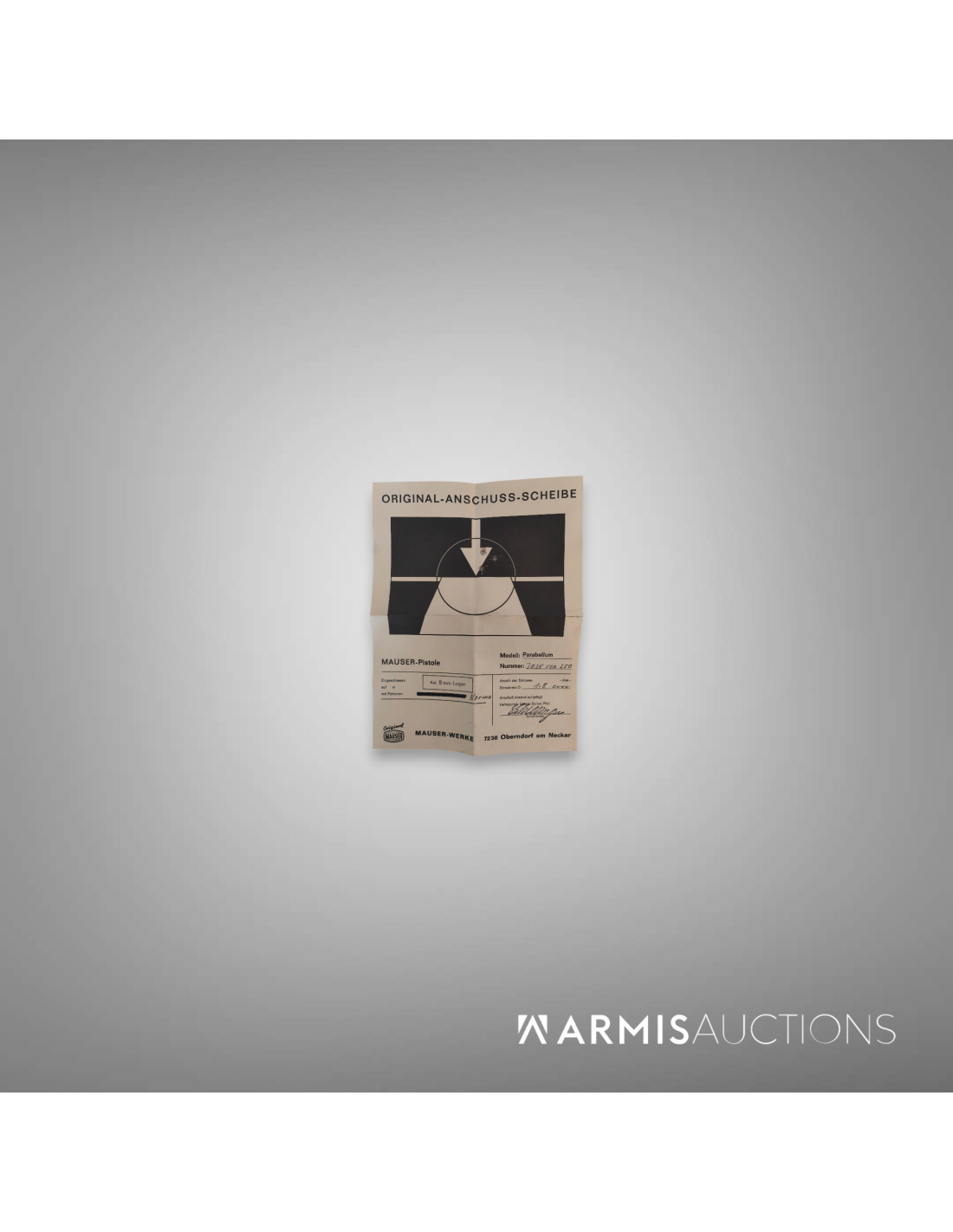 Documents d'origine, y compris le certificat de Mauser, mode d'emploi, cible-test